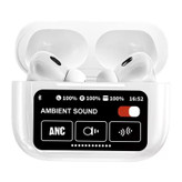 نمایشگر لمسی OLED: این ایرپاد به یک نمایشگر لمسی OLED مجهز شده است که به شما امکان می دهد به راحتی عملکردهای مختلف آن را کنترل کنید. می توانید تصویر زمینه دلخواه خود را بر روی نمایشگر تنظیم کنید، اعلانات و پیام های شبکه های اجتماعی را مشاهده کنید، نام و شماره تماس گیرنده را ببینید و از آن به عنوان ریموت دوربین استفاده کنید.