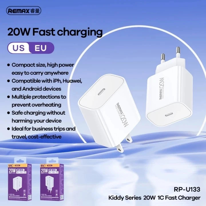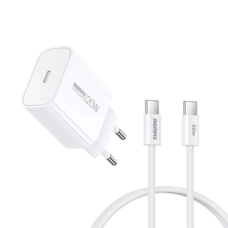 شارژر دیواری 20 وات ریمکس پورت PD به همراه کابل تبدیل USB-C